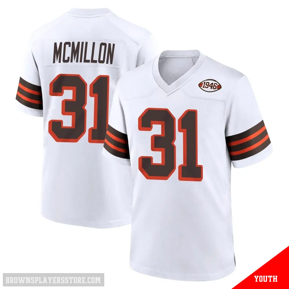 Display your Browns spirit year-round with this #31 Youth Donovan McMillon White Game Cleveland Browns 1946 Collection Alternate Jersey. Whether you're in the crowd or lounging at home, it's the ideal way to showcase your love for Browns.