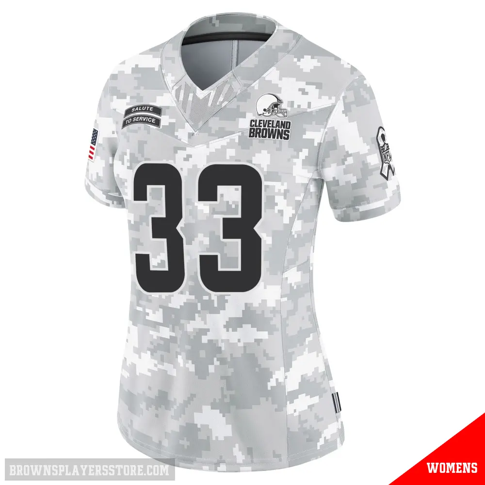 Display your Browns spirit year-round with this #33 Women's Ronnie Hickman Arctic Camo Limited Cleveland Browns 2024 Salute to Service Jersey. Whether you're in the crowd or lounging at home, it's the ideal way to showcase your love for Browns.