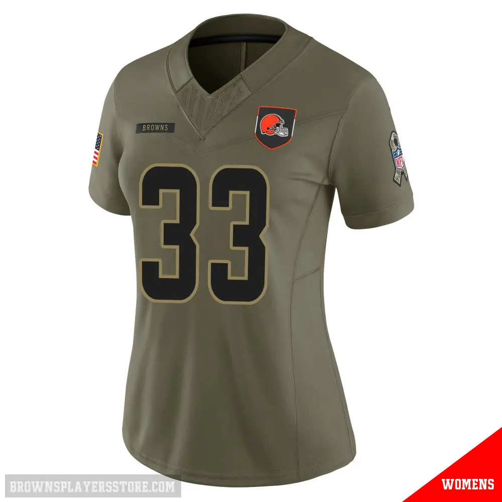 Display your Browns spirit year-round with this #33 Women's Ronnie Hickman Olive Limited Cleveland Browns 2025 Salute to Service Jersey. Whether you're in the crowd or lounging at home, it's the ideal way to showcase your love for Browns.