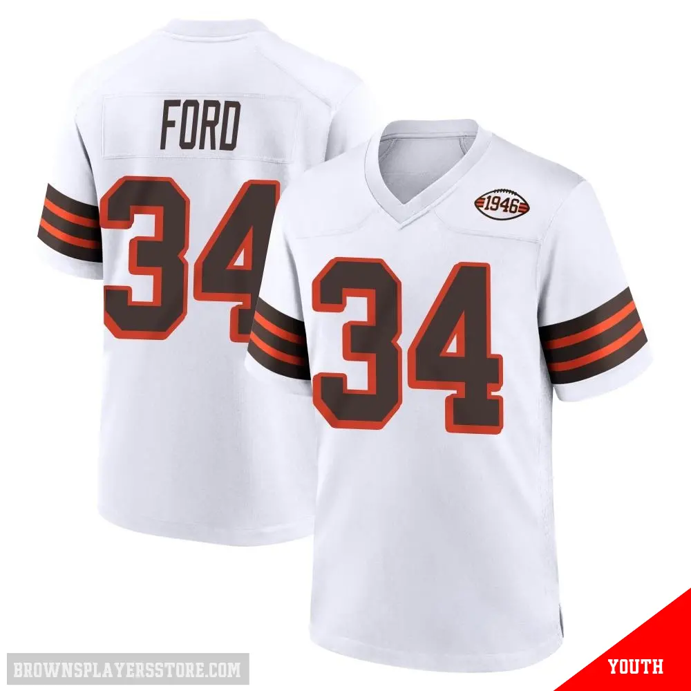 #34 Youth Jerome Ford White Game Cleveland Browns 1946 Collection Alternate Jersey