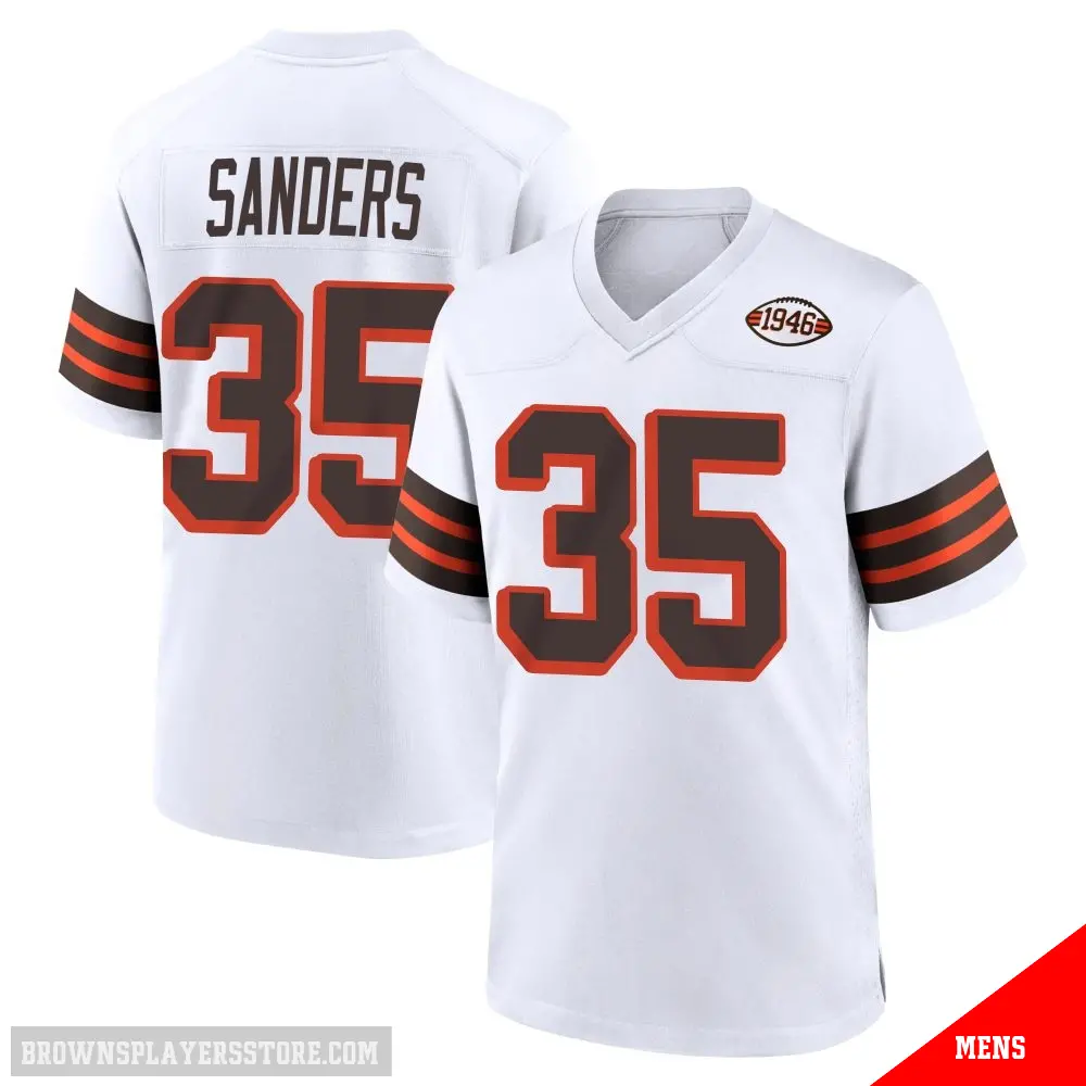 #35 Men's Raheim Sanders White Game Cleveland Browns 1946 Collection Alternate Jersey