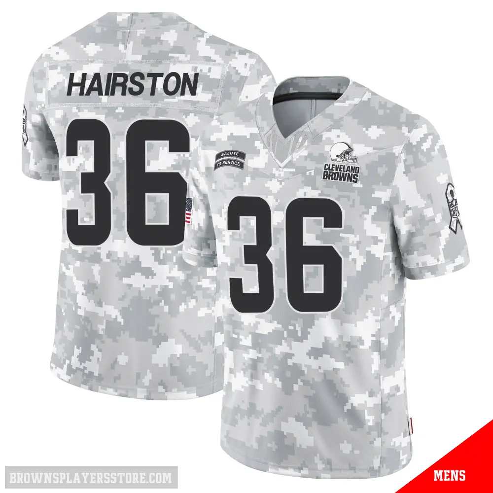 Display your Browns spirit year-round with this #36 Men's Troy Hairston Arctic Camo Limited Cleveland Browns 2024 Salute to Service Jersey. Whether you're in the crowd or lounging at home, it's the ideal way to showcase your love for Browns.
