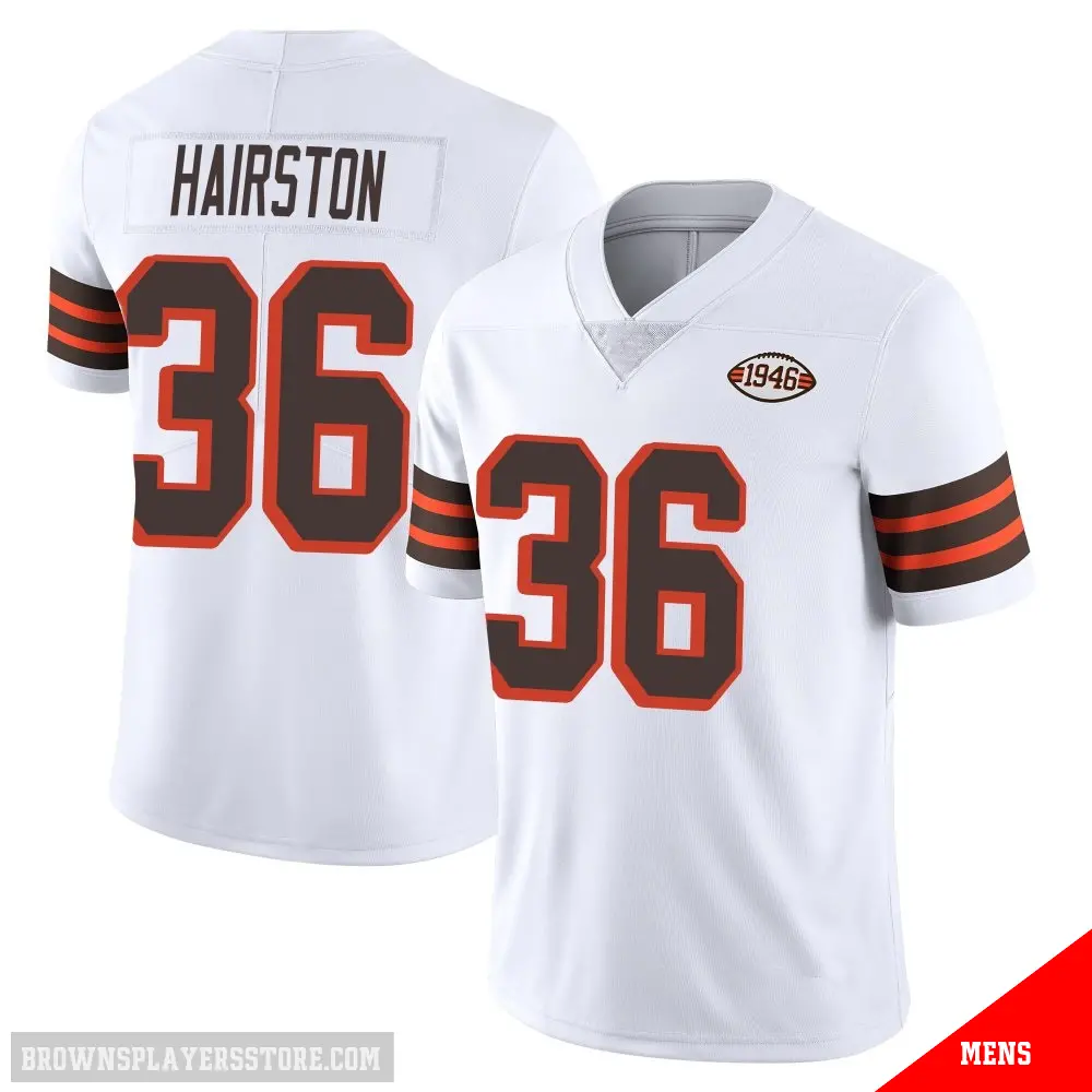 Display your Browns spirit year-round with this #36 Men's Troy Hairston White Limited Cleveland Browns Vapor 1946 Collection Alternate Jersey. Whether you're in the crowd or lounging at home, it's the ideal way to showcase your love for Browns.