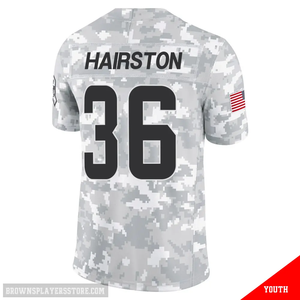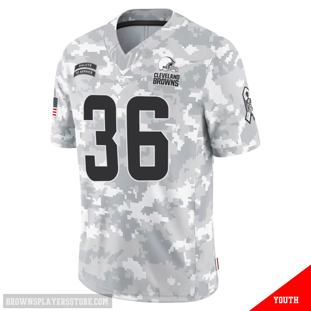Display your Browns spirit year-round with this #36 Youth Troy Hairston Arctic Camo Limited Cleveland Browns 2024 Salute to Service Jersey. Whether you're in the crowd or lounging at home, it's the ideal way to showcase your love for Browns.