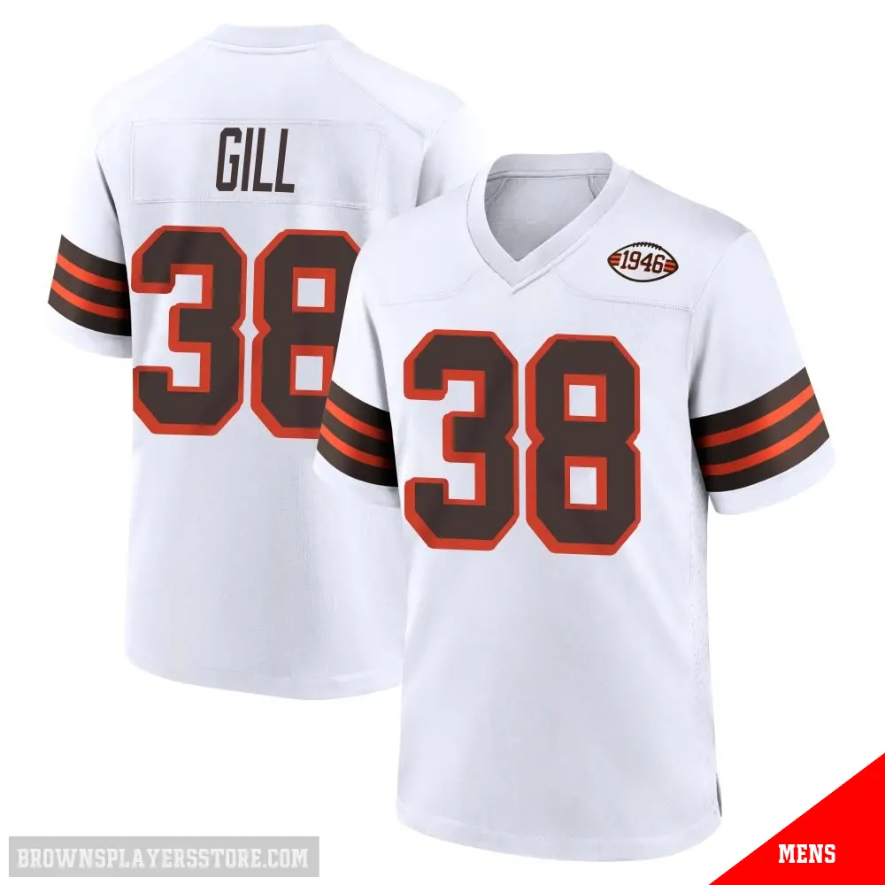 Display your Browns spirit year-round with this #38 Men's Jaelen Gill White Game Cleveland Browns 1946 Collection Alternate Jersey. Whether you're in the crowd or lounging at home, it's the ideal way to showcase your love for Browns.