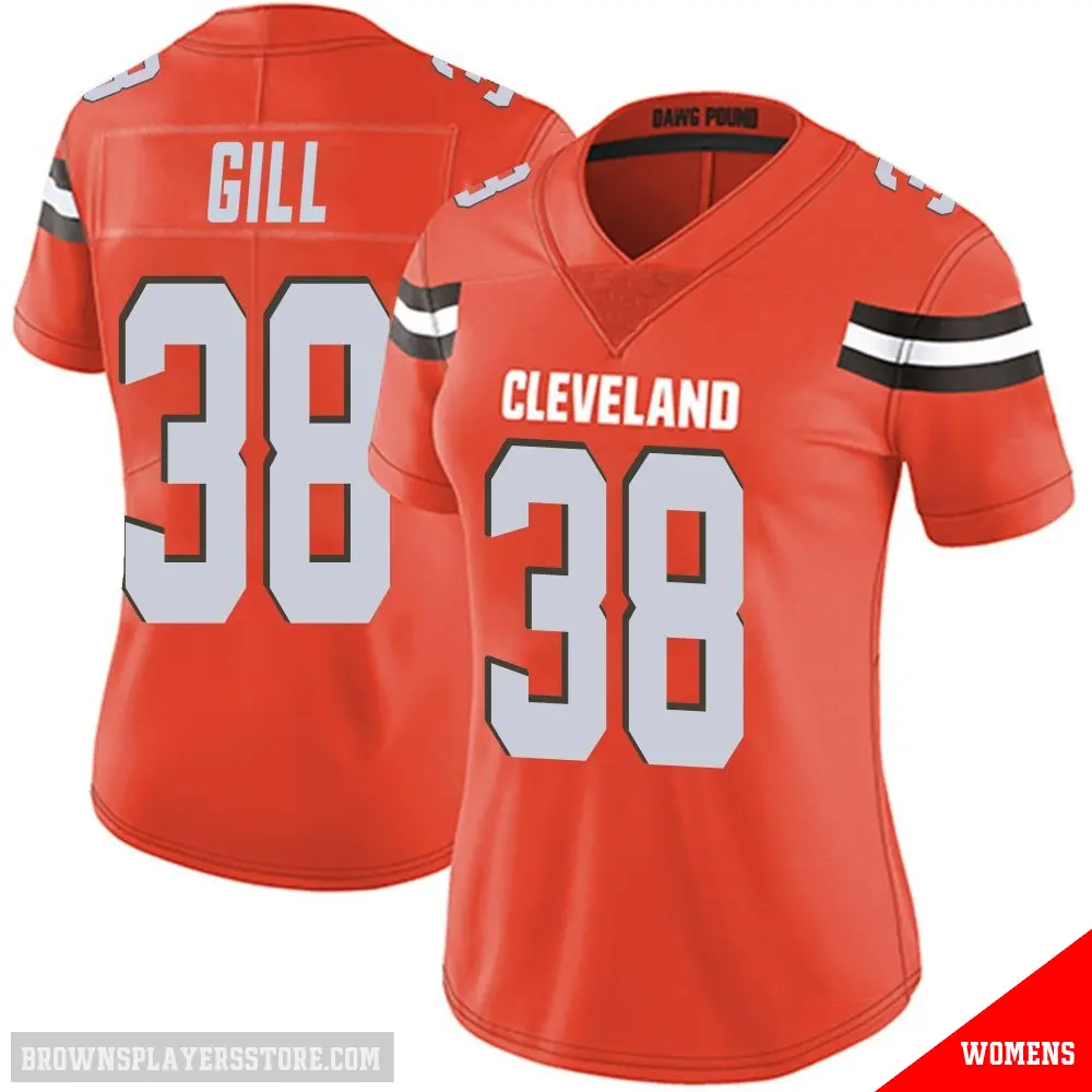 Display your Browns spirit year-round with this #38 Women's Jaelen Gill Orange Limited Cleveland Browns Alternate Vapor Untouchable Jersey. Whether you're in the crowd or lounging at home, it's the ideal way to showcase your love for Browns.