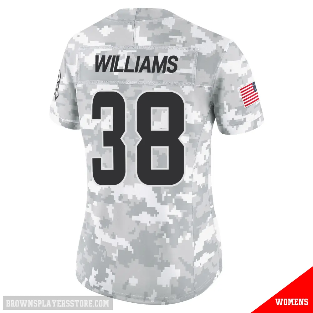 Display your Browns spirit year-round with this #38 Women's Trayveon Williams Arctic Camo Limited Cleveland Browns 2024 Salute to Service Jersey. Whether you're in the crowd or lounging at home, it's the ideal way to showcase your love for Browns.