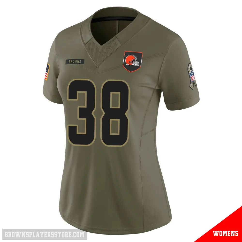 Display your Browns spirit year-round with this #38 Women's Trayveon Williams Olive Limited Cleveland Browns 2025 Salute to Service Jersey. Whether you're in the crowd or lounging at home, it's the ideal way to showcase your love for Browns.