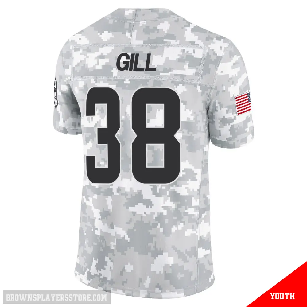Display your Browns spirit year-round with this #38 Youth Jaelen Gill Arctic Camo Limited Cleveland Browns 2024 Salute to Service Jersey. Whether you're in the crowd or lounging at home, it's the ideal way to showcase your love for Browns.