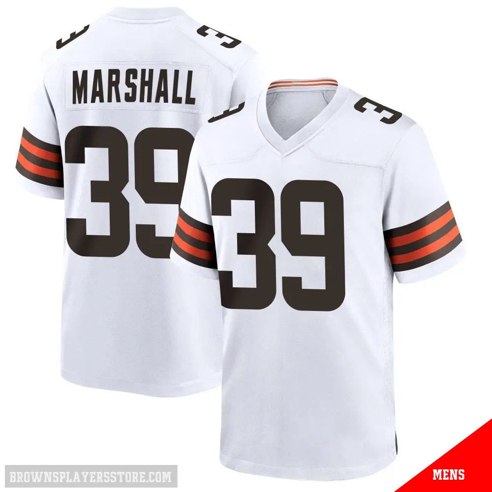 Display your Browns spirit year-round with this #39 Men's Ahmani Marshall White Game Cleveland Browns Jersey. Whether you're in the crowd or lounging at home, it's the ideal way to showcase your love for Browns.