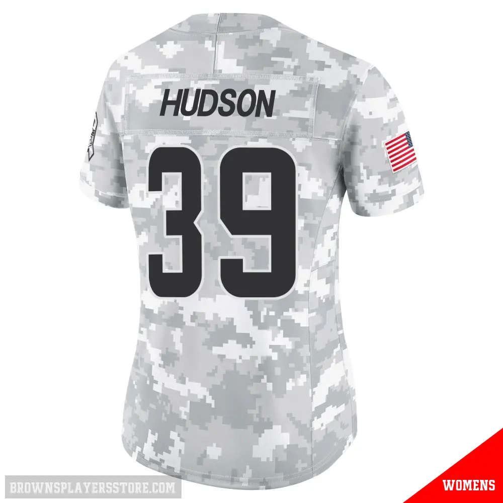 Display your Browns spirit year-round with this #39 Women's Khaleke Hudson Arctic Camo Limited Cleveland Browns 2024 Salute to Service Jersey. Whether you're in the crowd or lounging at home, it's the ideal way to showcase your love for Browns.