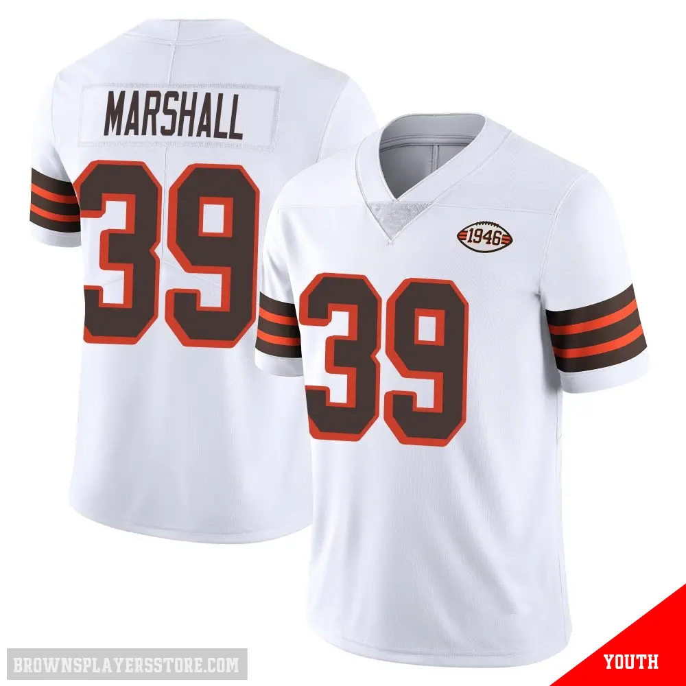 Display your Browns spirit year-round with this #39 Youth Ahmani Marshall White Limited Cleveland Browns Vapor 1946 Collection Alternate Jersey. Whether you're in the crowd or lounging at home, it's the ideal way to showcase your love for Browns.
