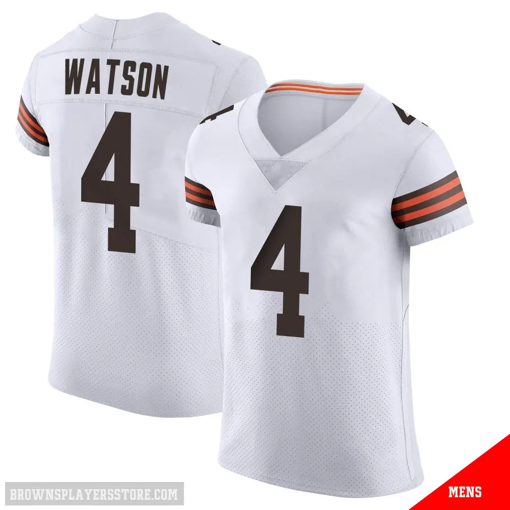 Display your Browns spirit year-round with this #4 Men's Deshaun Watson White Elite Cleveland Browns Vapor Jersey. Whether you're in the crowd or lounging at home, it's the ideal way to showcase your love for Browns.