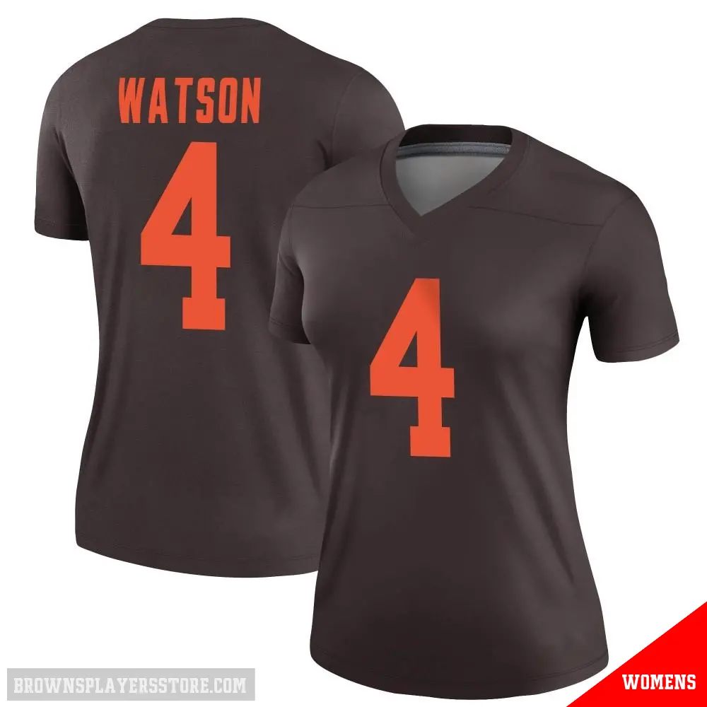Display your Browns spirit year-round with this #4 Women's Deshaun Watson Brown Legend Cleveland Browns Alternate Jersey. Whether you're in the crowd or lounging at home, it's the ideal way to showcase your love for Browns.