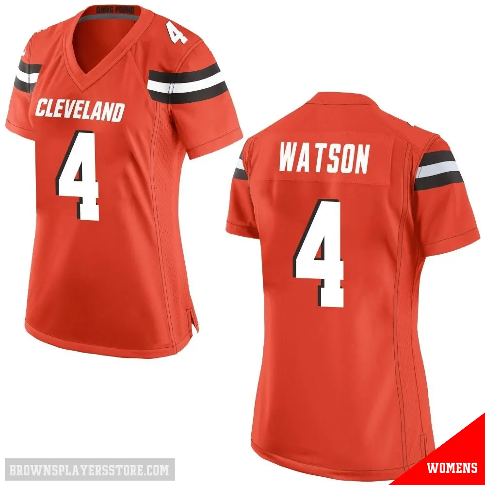 Display your Browns spirit year-round with this #4 Women's Deshaun Watson Orange Game Cleveland Browns Alternate Jersey. Whether you're in the crowd or lounging at home, it's the ideal way to showcase your love for Browns.