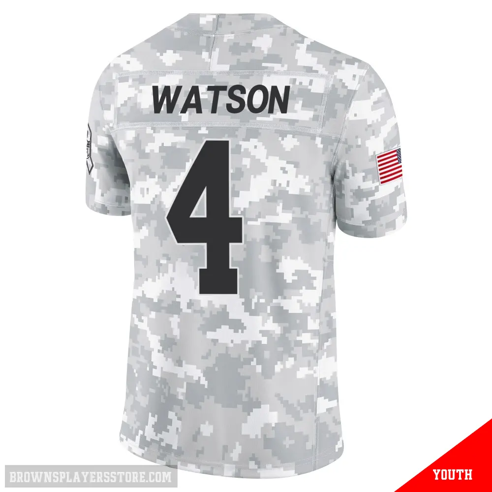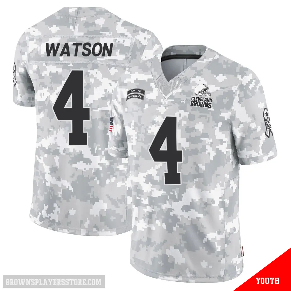 Display your Browns spirit year-round with this #4 Youth Deshaun Watson Arctic Camo Limited Cleveland Browns 2024 Salute to Service Jersey. Whether you're in the crowd or lounging at home, it's the ideal way to showcase your love for Browns.