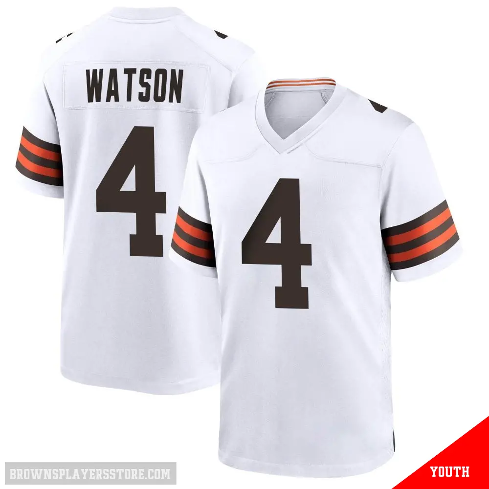 Display your Browns spirit year-round with this #4 Youth Deshaun Watson White Game Cleveland Browns Jersey. Whether you're in the crowd or lounging at home, it's the ideal way to showcase your love for Browns.