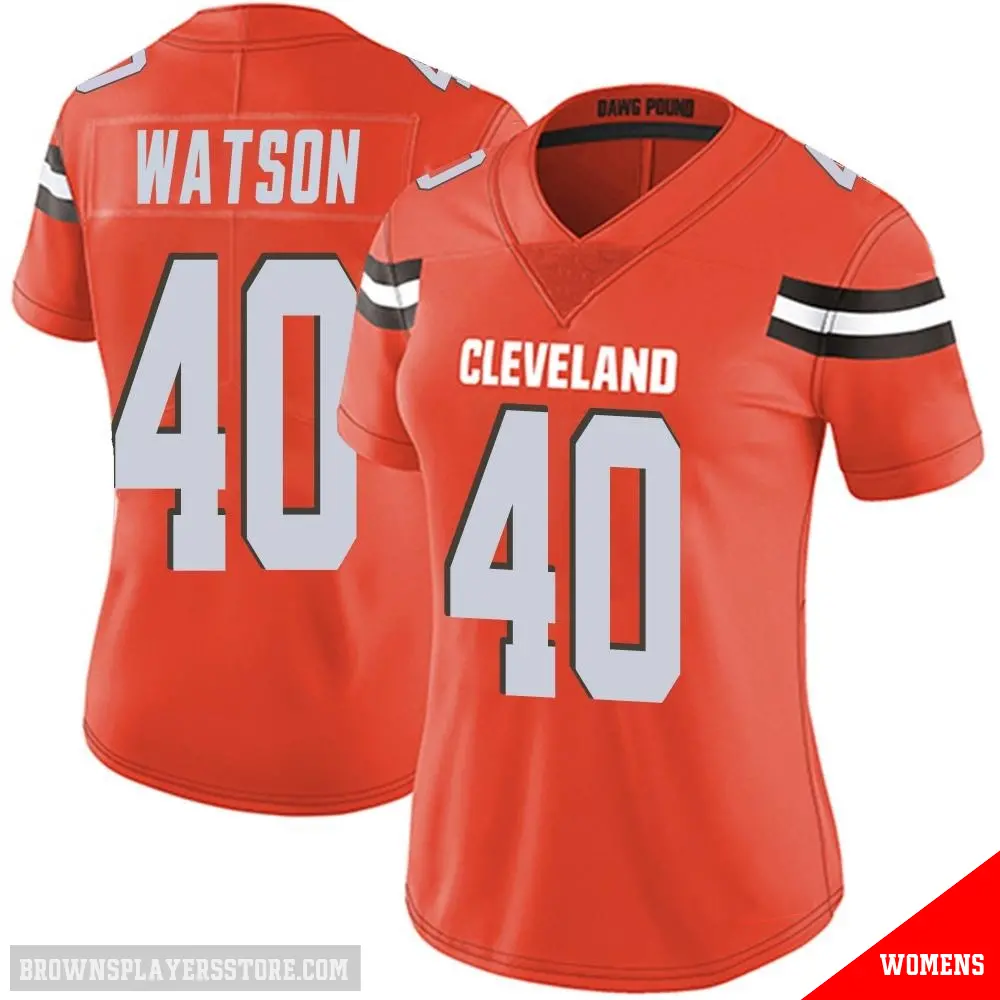 Display your Browns spirit year-round with this #40 Women's Nathaniel Watson Orange Limited Cleveland Browns Alternate Vapor Untouchable Jersey. Whether you're in the crowd or lounging at home, it's the ideal way to showcase your love for Browns.
