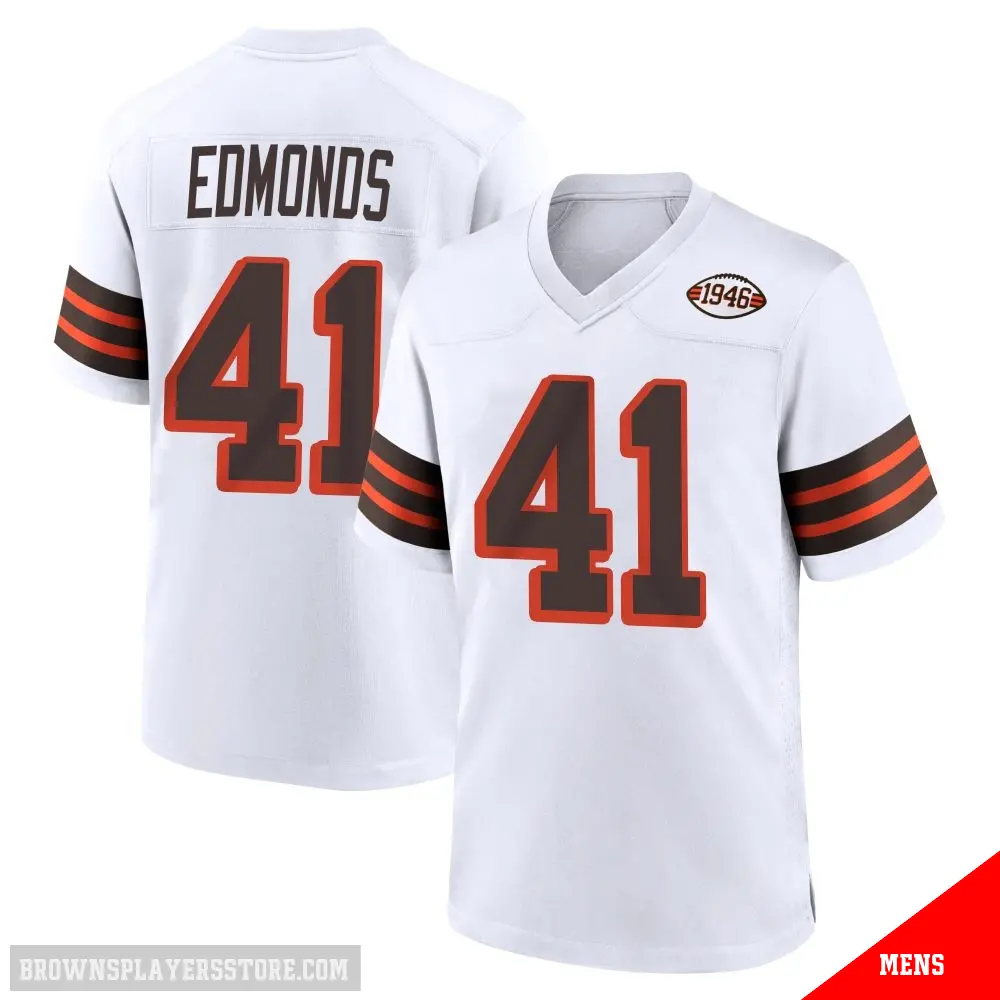 #41 Men's Chris Edmonds White Game Cleveland Browns 1946 Collection Alternate Jersey