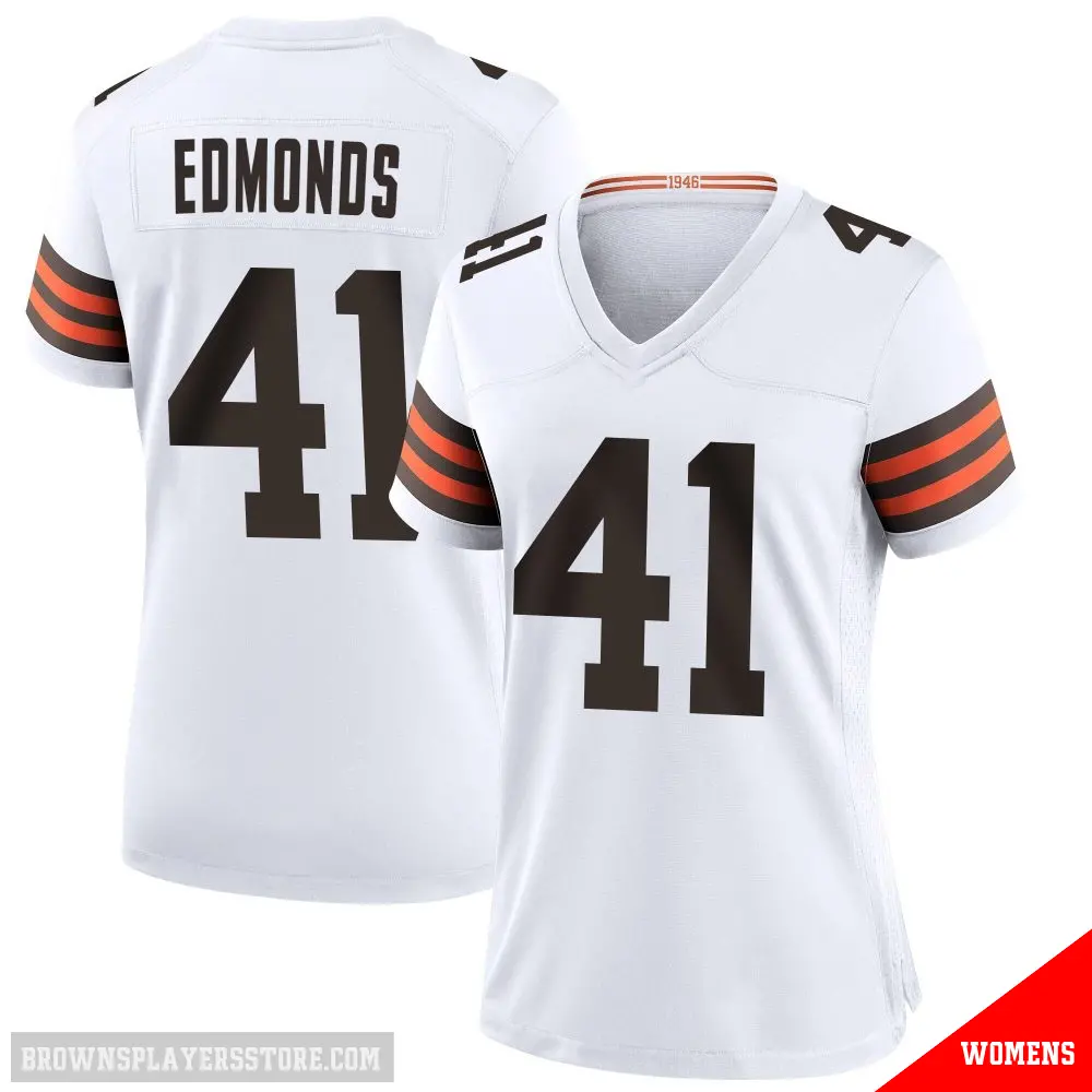 Display your Browns spirit year-round with this #41 Women's Chris Edmonds White Game Cleveland Browns Jersey. Whether you're in the crowd or lounging at home, it's the ideal way to showcase your love for Browns.