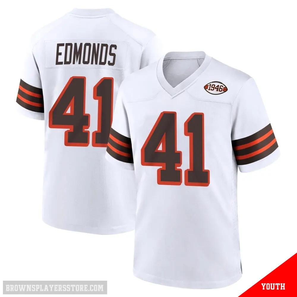 #41 Youth Chris Edmonds White Game Cleveland Browns 1946 Collection Alternate Jersey
