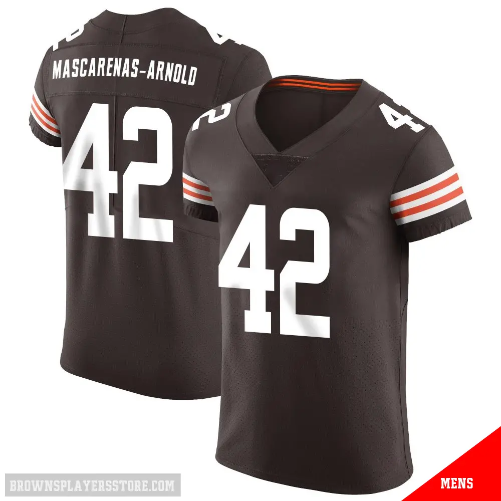 Display your Browns spirit year-round with this #42 Men's Easton Mascarenas-Arnold Brown Elite Cleveland Browns Vapor Jersey. Whether you're in the crowd or lounging at home, it's the ideal way to showcase your love for Browns.