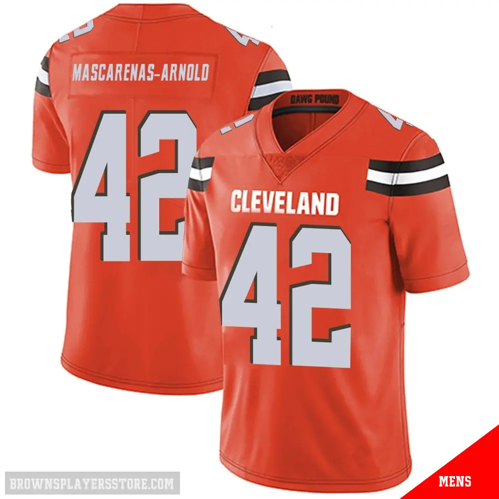 Display your Browns spirit year-round with this #42 Men's Easton Mascarenas-Arnold Orange Limited Cleveland Browns Alternate Vapor Untouchable Jersey. Whether you're in the crowd or lounging at home, it's the ideal way to showcase your love for Browns.