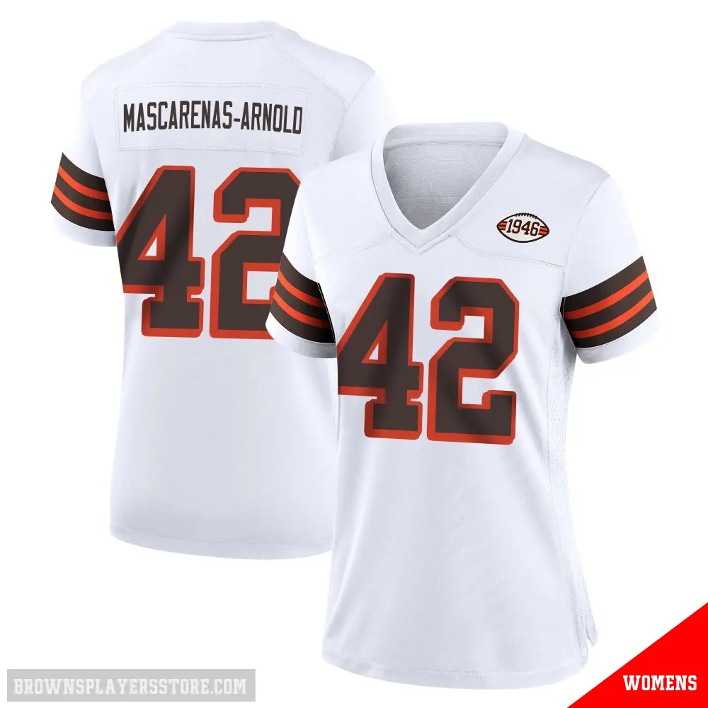 Display your Browns spirit year-round with this #42 Women's Easton Mascarenas-Arnold White Game Cleveland Browns 1946 Collection Alternate Jersey. Whether you're in the crowd or lounging at home, it's the ideal way to showcase your love for Browns.