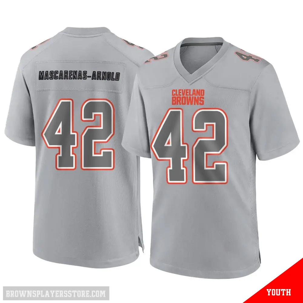 Display your Browns spirit year-round with this #42 Youth Easton Mascarenas-Arnold Gray Game Cleveland Browns Atmosphere Fashion Jersey. Whether you're in the crowd or lounging at home, it's the ideal way to showcase your love for Browns.