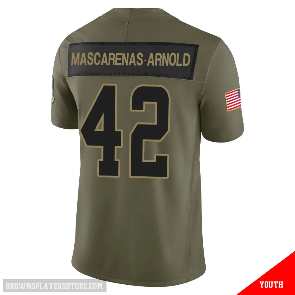 Display your Browns spirit year-round with this #42 Youth Easton Mascarenas-Arnold Olive Limited Cleveland Browns 2025 Salute to Service Jersey. Whether you're in the crowd or lounging at home, it's the ideal way to showcase your love for Browns.