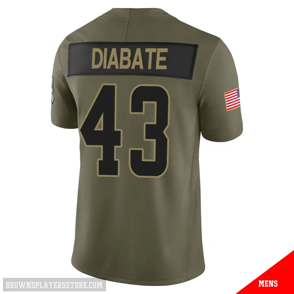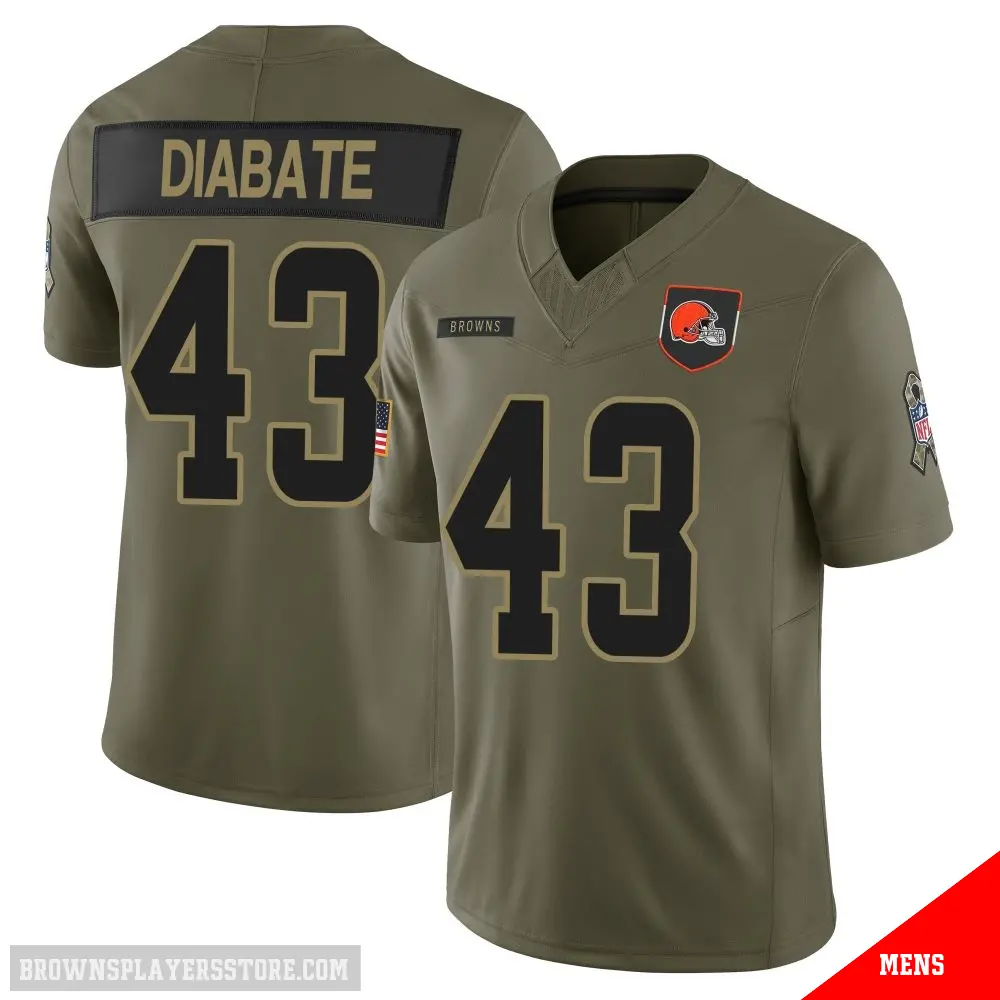 Display your Browns spirit year-round with this #43 Men's Mohamoud Diabate Olive Limited Cleveland Browns 2025 Salute to Service Jersey. Whether you're in the crowd or lounging at home, it's the ideal way to showcase your love for Browns.