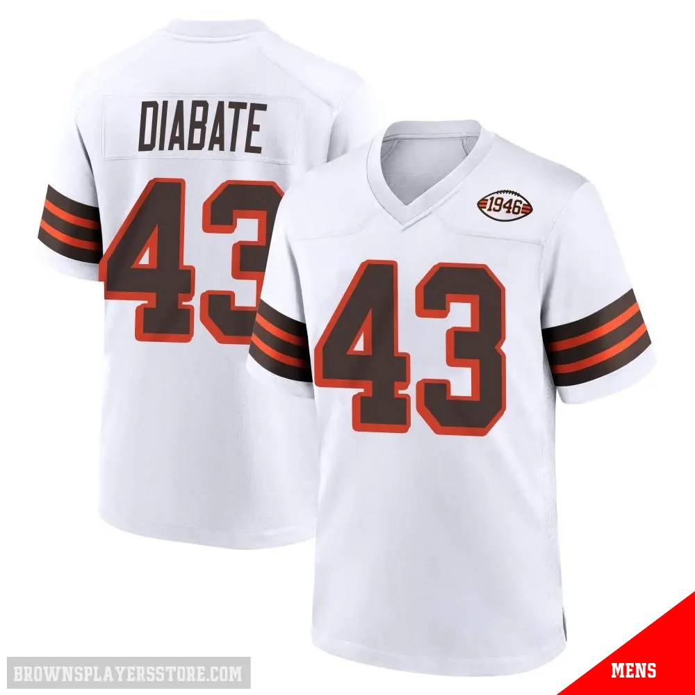 Display your Browns spirit year-round with this #43 Men's Mohamoud Diabate White Game Cleveland Browns 1946 Collection Alternate Jersey. Whether you're in the crowd or lounging at home, it's the ideal way to showcase your love for Browns.
