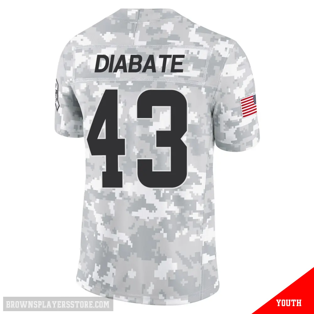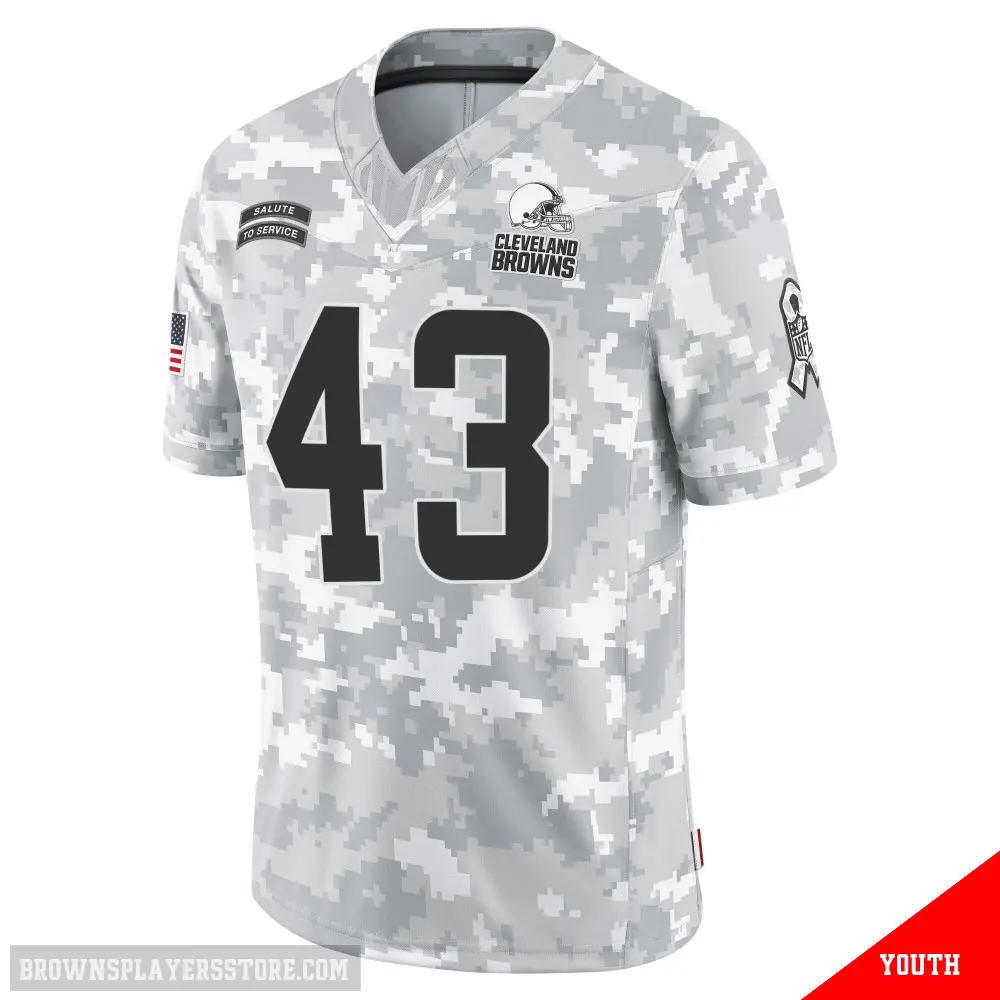 Display your Browns spirit year-round with this #43 Youth Mohamoud Diabate Arctic Camo Limited Cleveland Browns 2024 Salute to Service Jersey. Whether you're in the crowd or lounging at home, it's the ideal way to showcase your love for Browns.