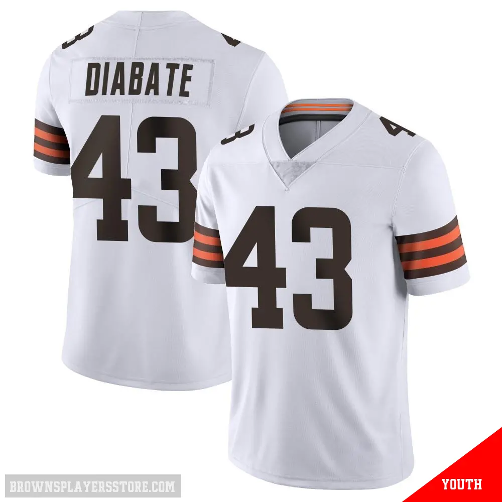 >Mohamoud Diabate Jersey>#43 Youth Mohamoud Diabate White Limited Cleveland Browns Vapor Untouchable Jersey