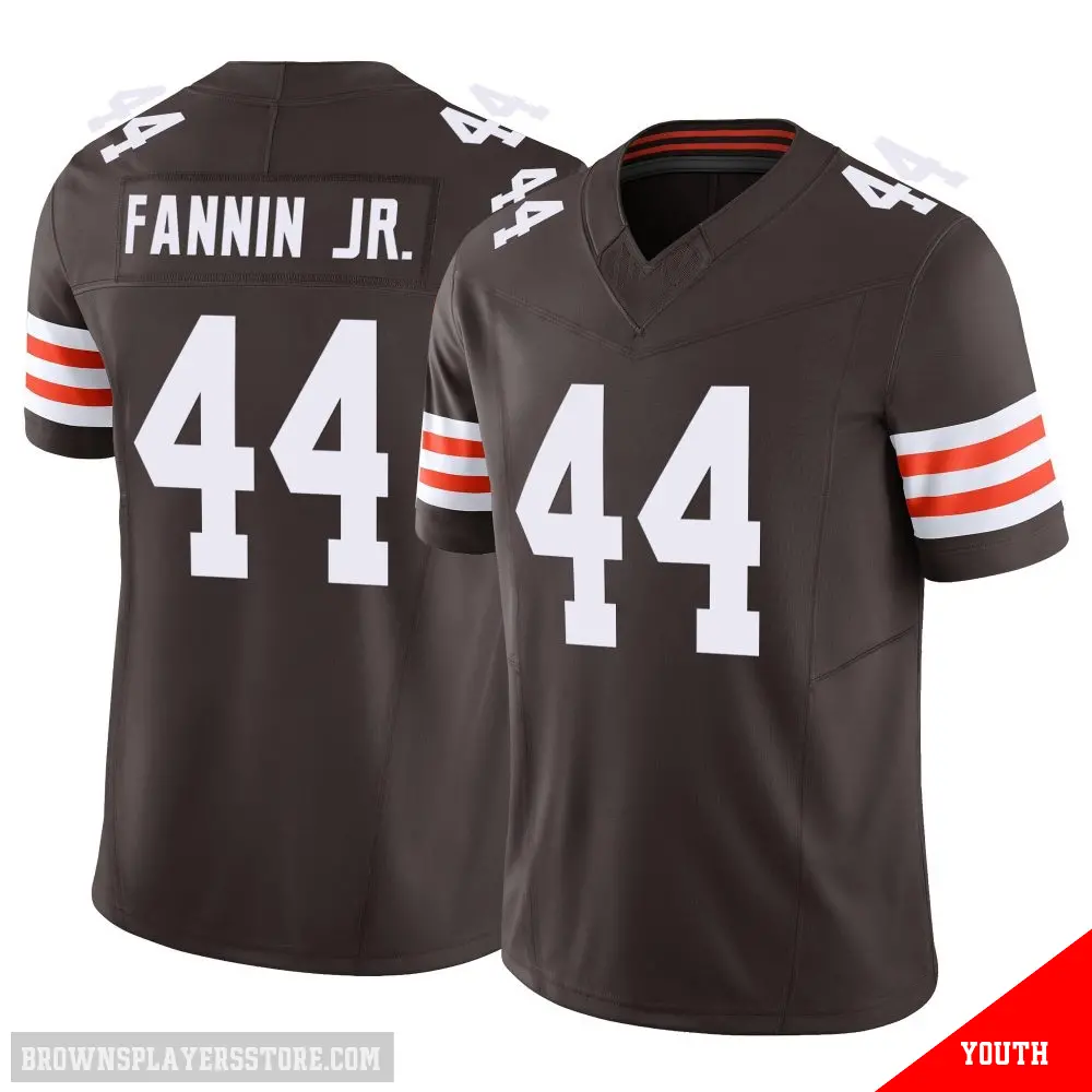 Display your Browns spirit year-round with this #44 Youth Harold Fannin Jr. Brown Limited Cleveland Browns Vapor F.U.S.E. Jersey. Whether you're in the crowd or lounging at home, it's the ideal way to showcase your love for Browns.