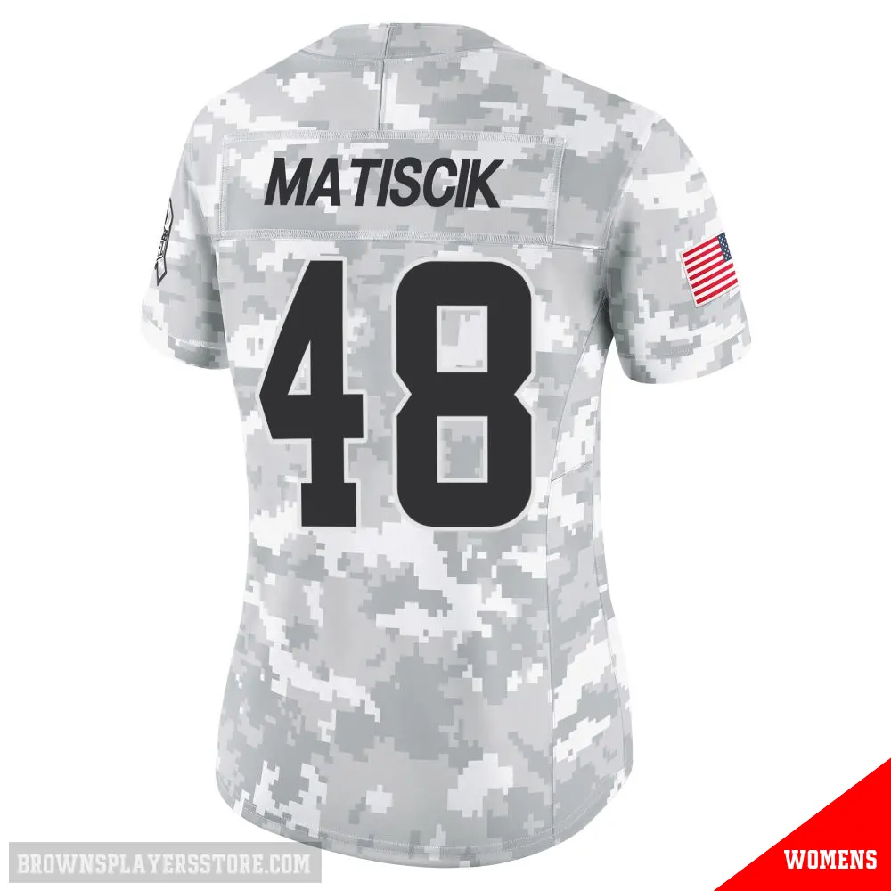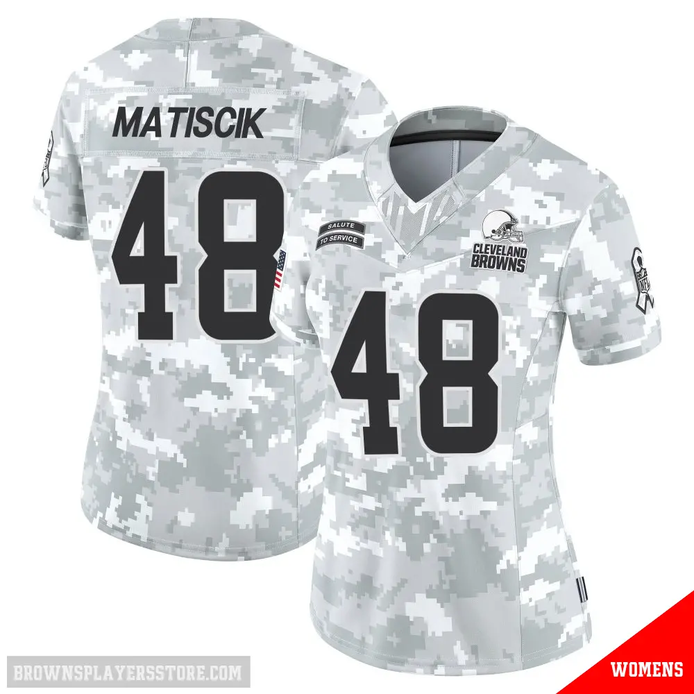 Display your Browns spirit year-round with this #48 Women's Brent Matiscik Arctic Camo Limited Cleveland Browns 2024 Salute to Service Jersey. Whether you're in the crowd or lounging at home, it's the ideal way to showcase your love for Browns.