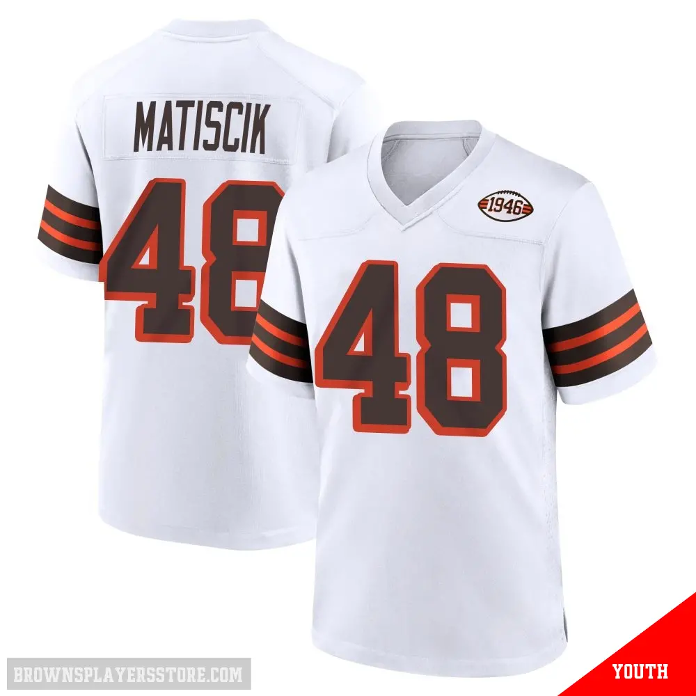 >Brent Matiscik Jersey>#48 Youth Brent Matiscik White Game Cleveland Browns 1946 Collection Alternate Jersey