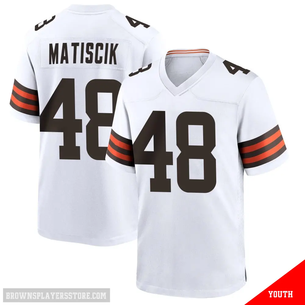 Display your Browns spirit year-round with this #48 Youth Brent Matiscik White Game Cleveland Browns Jersey. Whether you're in the crowd or lounging at home, it's the ideal way to showcase your love for Browns.