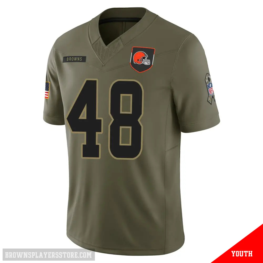 #48 Youth Cameron McGrone Olive Limited Cleveland Browns 2025 Salute to Service Jersey