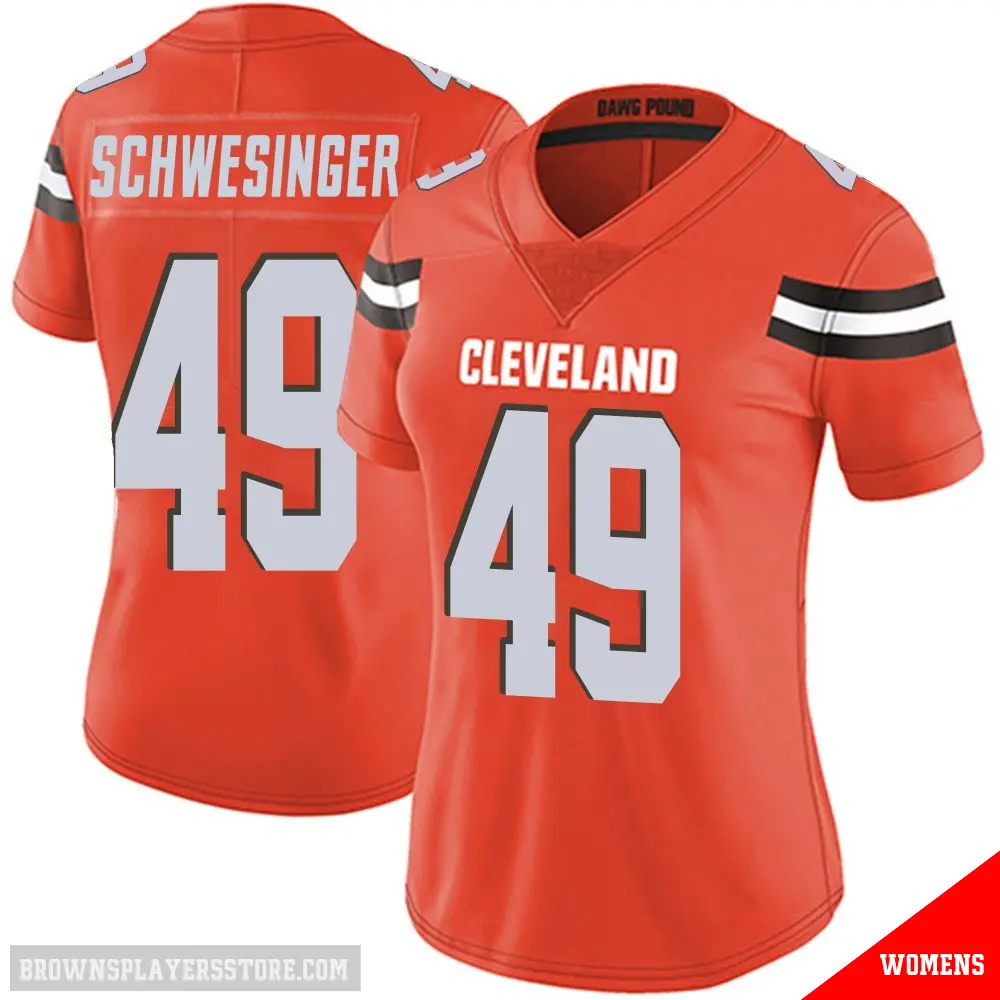 Display your Browns spirit year-round with this #49 Women's Carson Schwesinger Orange Limited Cleveland Browns Alternate Vapor Untouchable Jersey. Whether you're in the crowd or lounging at home, it's the ideal way to showcase your love for Browns.