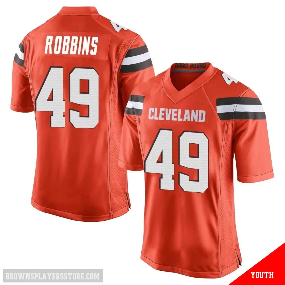 Display your Browns spirit year-round with this #49 Youth Aidan Robbins Orange Game Cleveland Browns Alternate Jersey. Whether you're in the crowd or lounging at home, it's the ideal way to showcase your love for Browns.