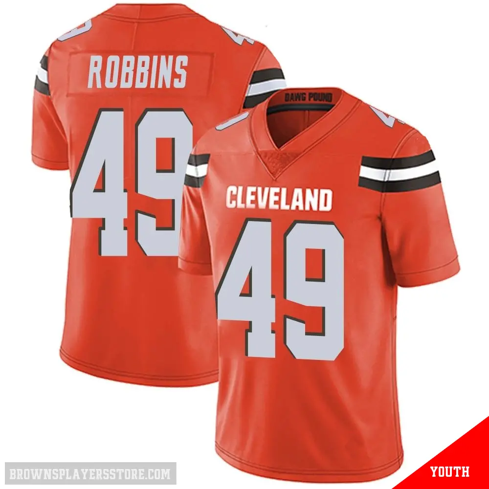 Display your Browns spirit year-round with this #49 Youth Aidan Robbins Orange Limited Cleveland Browns Alternate Vapor Untouchable Jersey. Whether you're in the crowd or lounging at home, it's the ideal way to showcase your love for Browns.