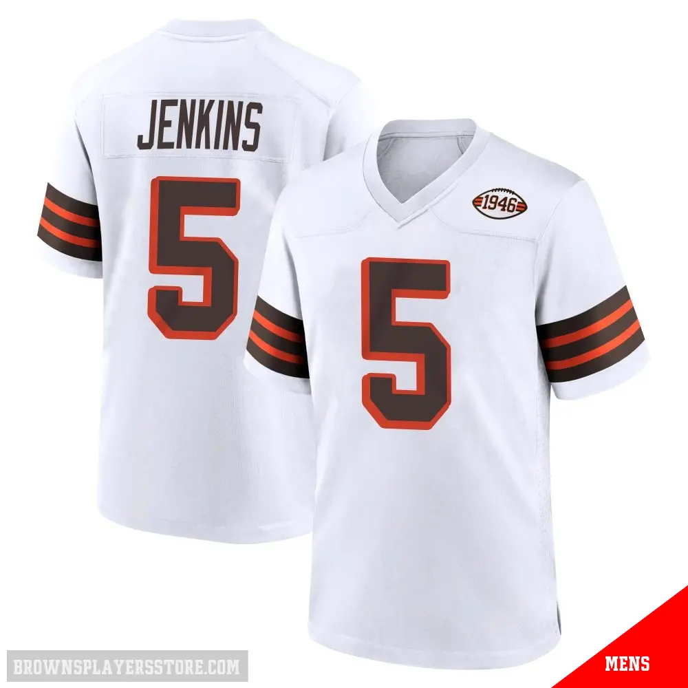 #5 Men's Rayshawn Jenkins White Game Cleveland Browns 1946 Collection Alternate Jersey