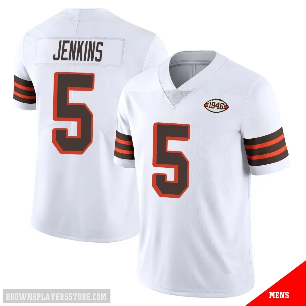 Display your Browns spirit year-round with this #5 Men's Rayshawn Jenkins White Limited Cleveland Browns Vapor 1946 Collection Alternate Jersey. Whether you're in the crowd or lounging at home, it's the ideal way to showcase your love for Browns.