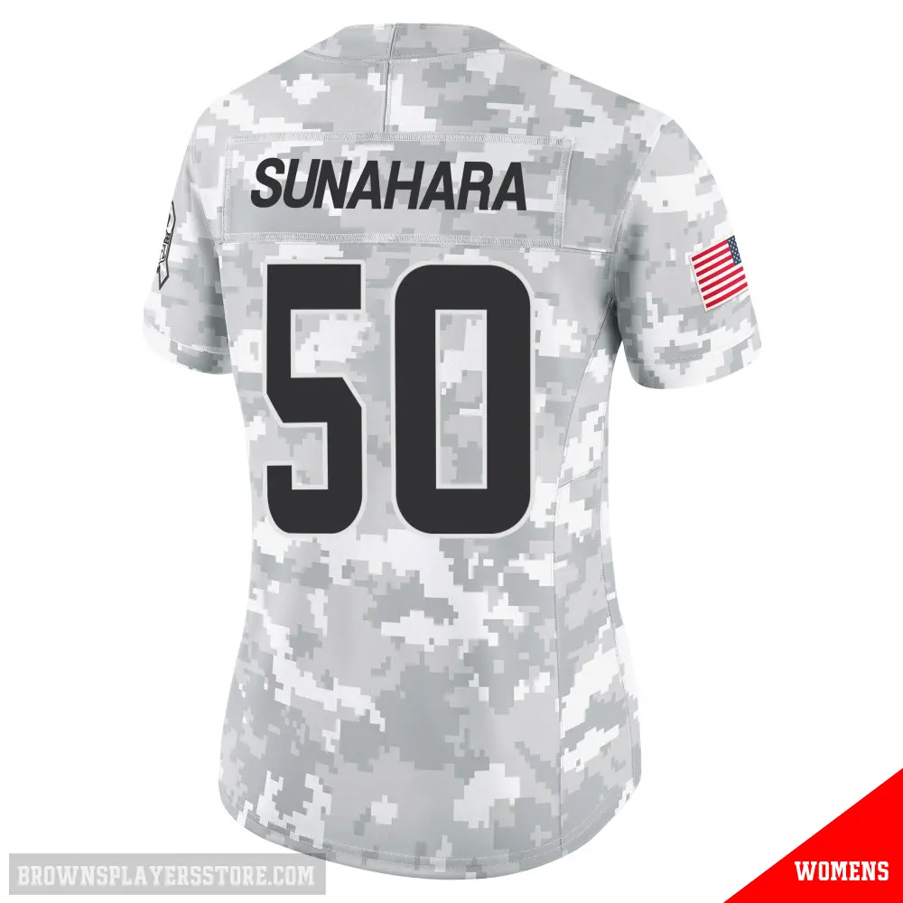 Display your Browns spirit year-round with this #50 Women's Rex Sunahara Arctic Camo Limited Cleveland Browns 2024 Salute to Service Jersey. Whether you're in the crowd or lounging at home, it's the ideal way to showcase your love for Browns.