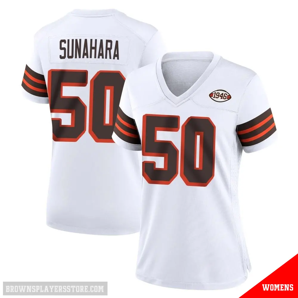 #50 Women's Rex Sunahara White Game Cleveland Browns 1946 Collection Alternate Jersey