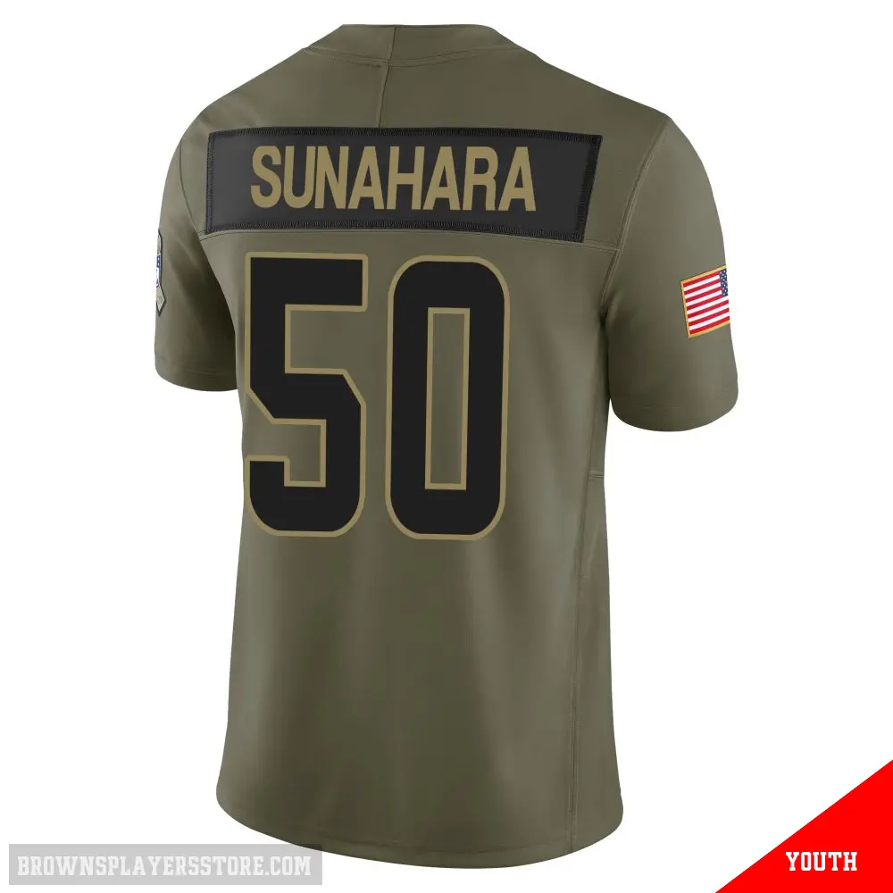 #50 Youth Rex Sunahara Olive Limited Cleveland Browns 2025 Salute to Service Jersey