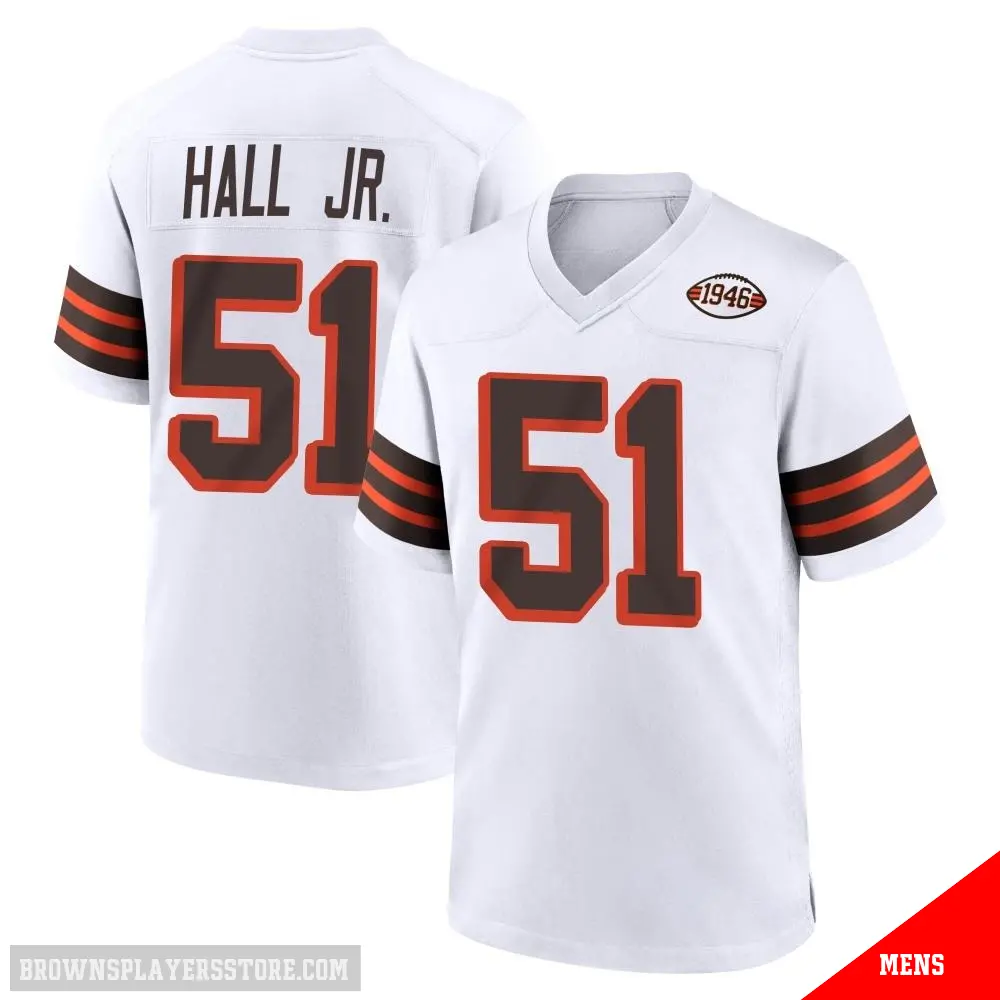 >Mike Hall Jr. Jersey>#51 Men's Mike Hall Jr. White Game Cleveland Browns 1946 Collection Alternate Jersey