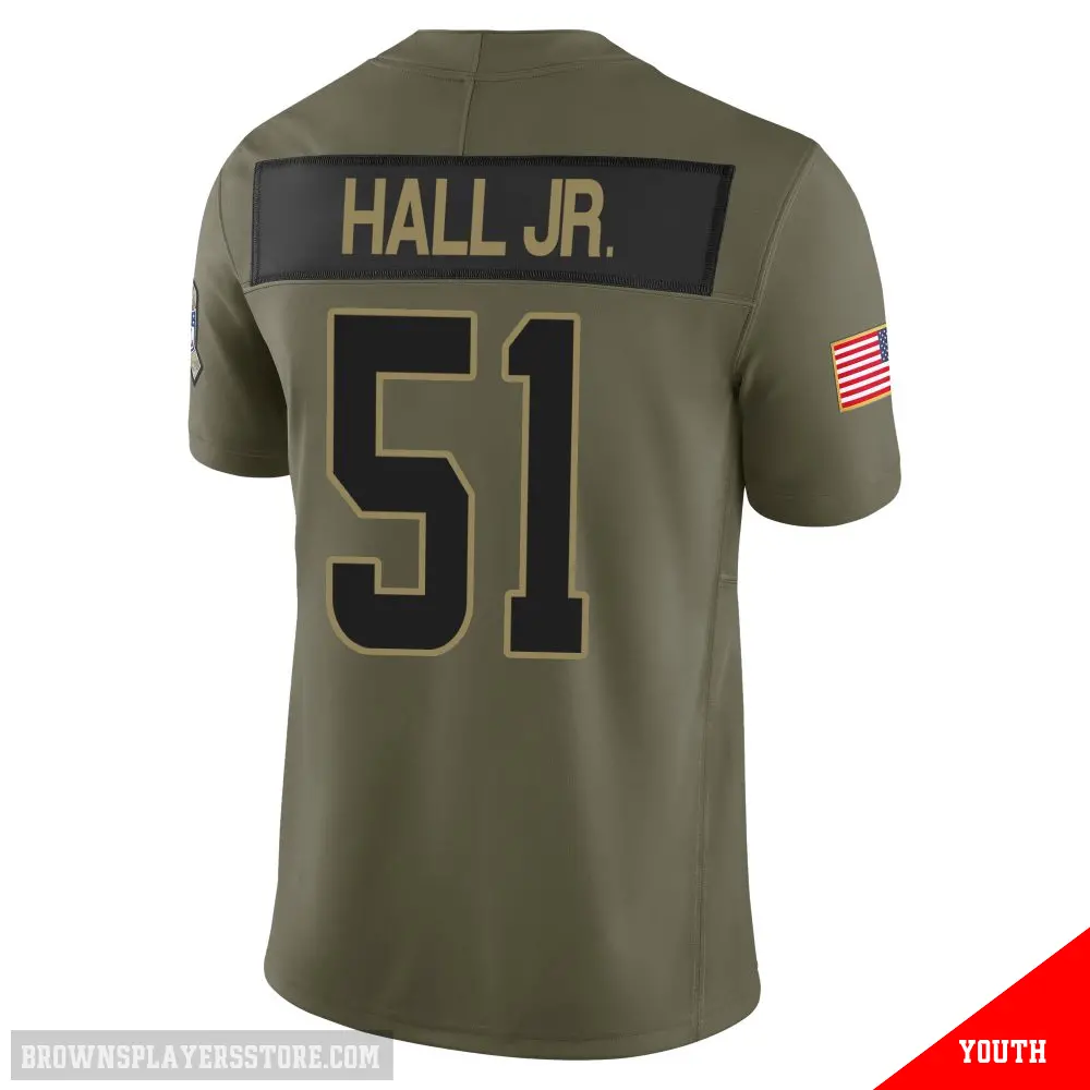 #51 Youth Mike Hall Jr. Olive Limited Cleveland Browns 2025 Salute to Service Jersey