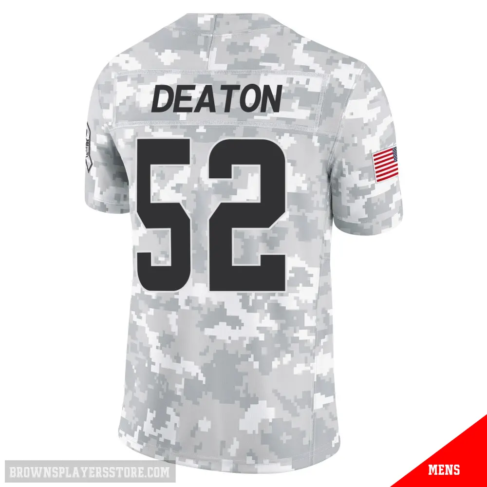Display your Browns spirit year-round with this #52 Men's Dawson Deaton Arctic Camo Limited Cleveland Browns 2024 Salute to Service Jersey. Whether you're in the crowd or lounging at home, it's the ideal way to showcase your love for Browns.
